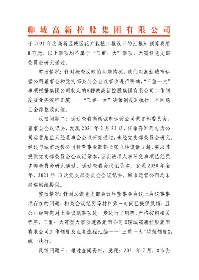 中共聊城高新控股集團(tuán)有限公司黨委關(guān)于十四屆市委第一輪巡察整改進(jìn)展情況的通報(bào)